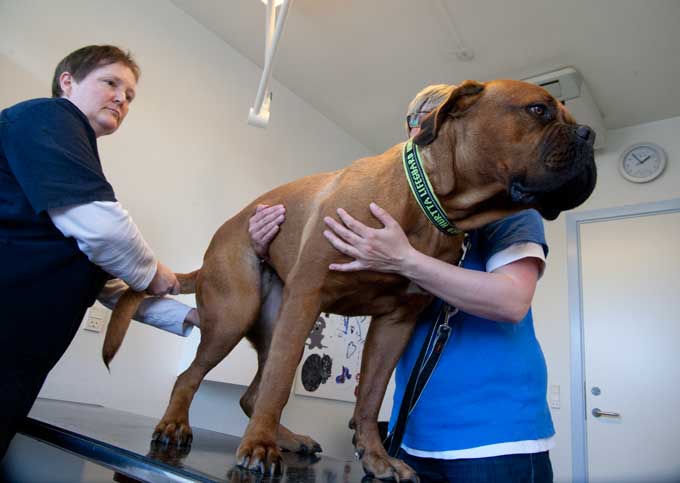 獣医クリニックでは、できるだけ飼い主自身が犬のハンドリングするのがいいと思う。その方が犬もよりリラックスできるからだ。私が住むスウェーデンだと、