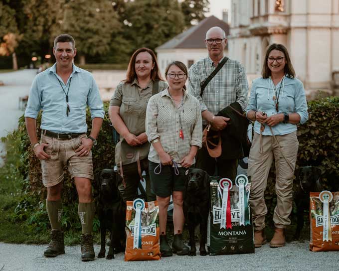 背景にお城をひかえて、オーストリアのワーキングテストの受賞式。テスト開催場所はガンドッグ競技会らしくこの城の領地にて。 [Photo by Anna Tóth]